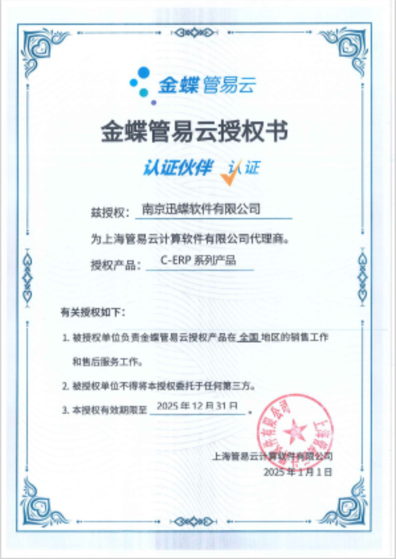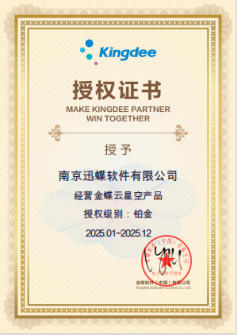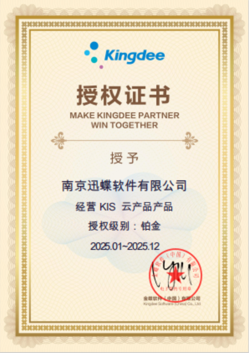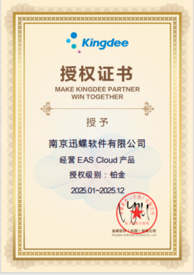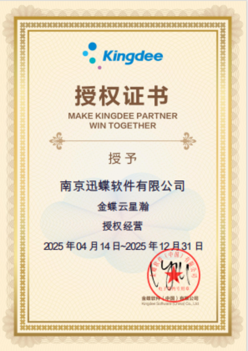 南京迅蝶软件有限公司成立于2007年,是金蝶集团核心优秀伙伴,是专业从事企业信息化管理软件销售、整体方案规划及系统集成、实施交付落地、持续优化改进的信息化咨询服务公司。公司业务范围:ERP、PLM、MES、WMS、CRM、HR、OA、电商、项目管理等软件销售、咨询和交付业务,实现企业价值共生,助力客户成长。多年来凭借优秀的咨询团队、丰富的企业信息化规划经验、满意的售后服务,南京迅蝶软件有限公司已成功交付2000多家企业信息化系统,300多家中大型企业全面整体信息化系统,帮助企业实现数智化转型,赢得了客户广泛支持和信赖,成为企业管理信息化持续提升的战略伙伴。公司现拥有多个知识产权,通过了双软认证、江苏省高新技术企业,是江苏省智能制造系统解决方案优秀供应商。